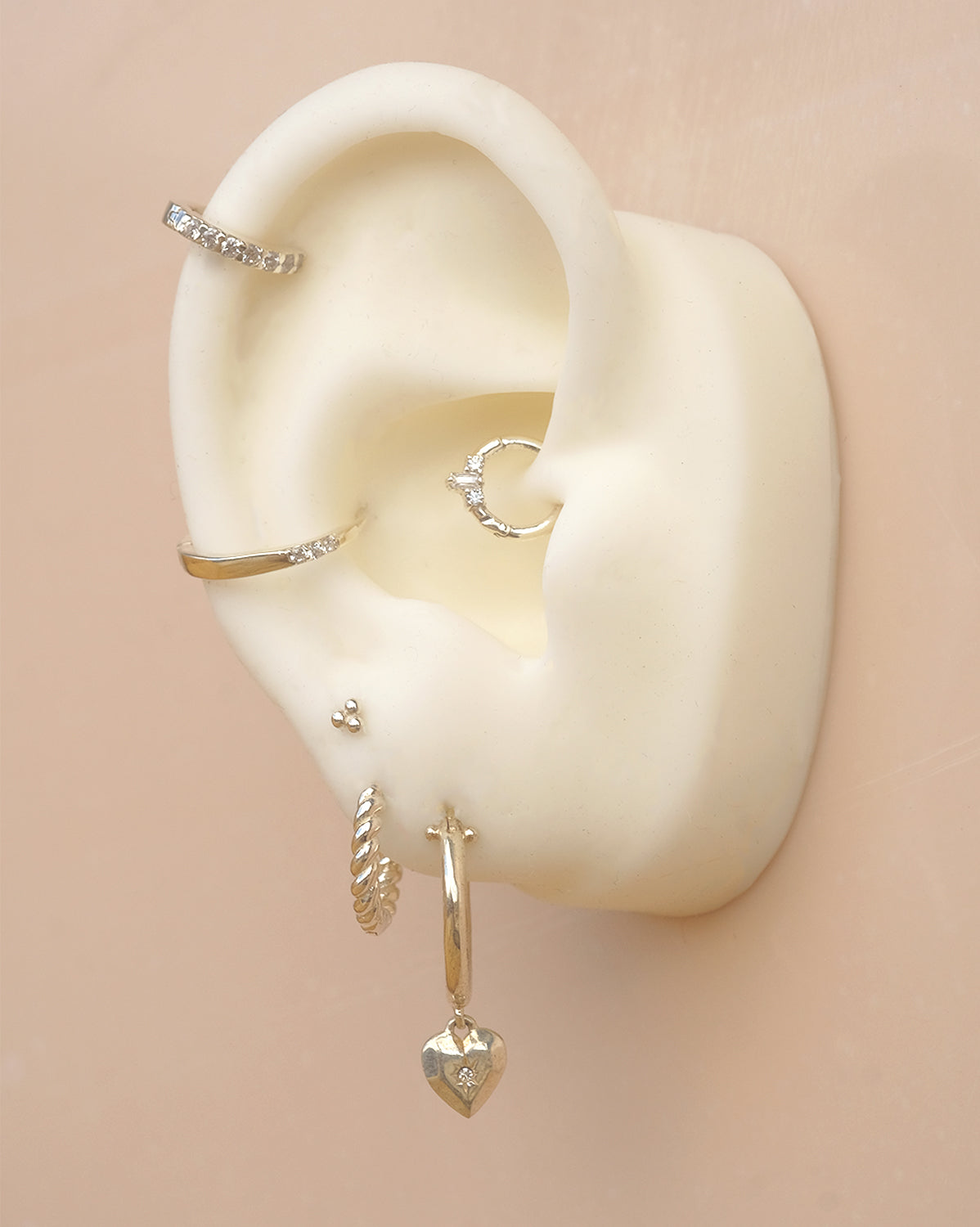 Inspired by the desire to have beautiful and high quality earrings for all our ear piercings, the Piercing Collection is suitable for fresh and healed piercings. With lobe friendly hoops and helix friendly ball back studs, the Piercing Collection can cater for fresh and healing piercings with our 14k solid gold earrings whilst our classic 18k gold fill earrings can be worn in all healed ear piercings. Made ethically in our factories in Mumbai, India, each Piercing Collection piece has been carefully crafted by our artisans just for you.